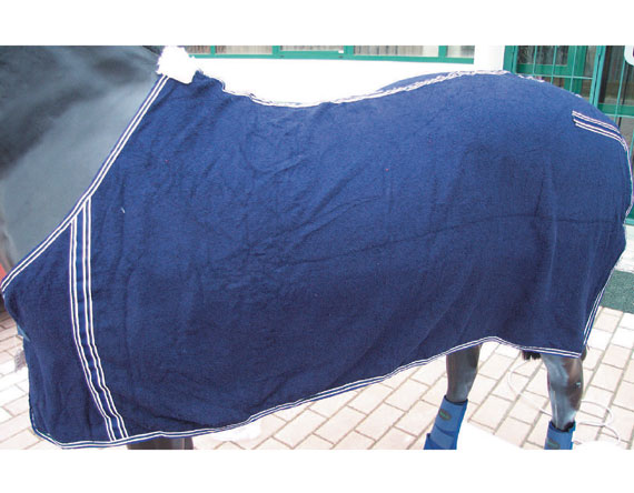 Copertina in pile da passeggio: si usa per passeggiare i cavalli quando c’è aria e sono sudati. Generalmente non ha le cinghie sottopancia.