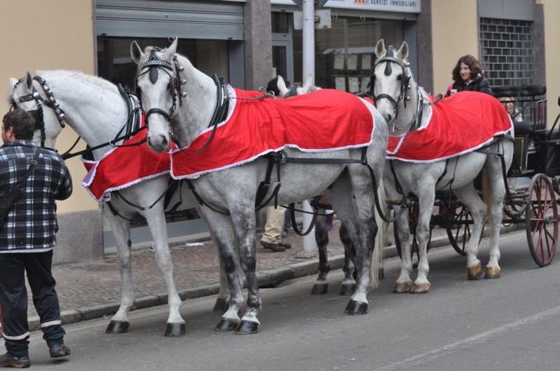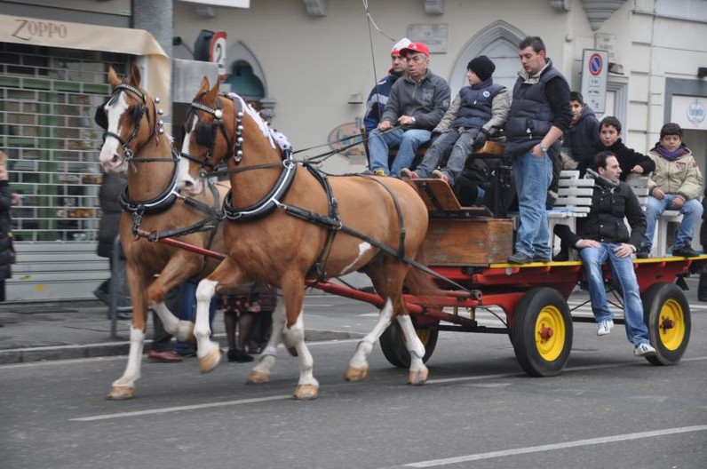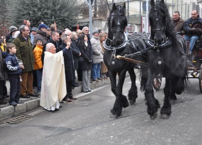 Come da tradizione, anche quest'anno si rinnova il tradizionale appuntamento di San Antonio17 gennaio 2010 festa di San Antonio santo protettore degli animali ed Ivrea risponde a gran voce a questa ricorrenza; infatti oltre ad una folla mai vista prima, si sono presentati davanti alla chiesa di San Lorenzo moltissimi attacchi ed il parroco a avuto il suo bel da fare per benedire tutti questi splendidi cavalli. Pariglie,tiri a quattro e singoli hanno infatti ricevuto la tradizionale benedizione, sfilando davanti al sagrato della parrocchia.E' stata proprio una gran bella festa, nonostante la temperatura sfiorasse lo zero, moltissime persone hanno volutoalladegli animali. Il cielo grigio ed il freddo pungente non hanno minimamenteil fascino di questa manifestazione.Si sono veramente presentati in tantissimi, attaccati e a sella, splendidi cavalli, bellissime carrozze d'epoca e repliche hanno potuto sfilare e mettersi in mostra per la gioia degli occhi di tutti gli appassionati che sono intervenuti numerosissimi, una tradizione che ogni anno vede crescere il numero degli attacchi presenti. Fa piacere vedere molti giovani alla guida e fa' ben sperare nel futuro di questa tradizione.Ora, il prossimo appuntamento, per rivedere tutti questi attacchi assieme e' CARNEVALE tra circa un mese. Sant’Antonio resta comunque una bella vetrina su quello che poi potremo vedere nelle piazze.Priori d'eccezione quest'anno, due conosciutissimi personaggi nel mondo dei cavalli e degli attacchi il Signor Rocco Cordera ed il Signor Loris Cavagnetto, persone che hanno fatto degli attacchi uno stile di vita, e per loro un ringraziamento particolareriuscita della festa.